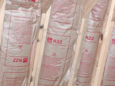 - R-22 Owens Corning insulation installed in vaulted ceiling in media room.