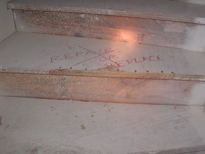 - Step which was hollowed out in spots has been repaired.