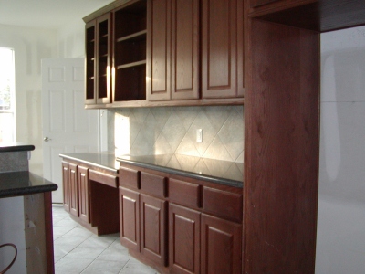- Cardboard is removed from countertops along exterior wall of kitchen.