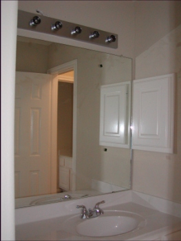 - Mirrors are installed in all bathrooms (except for above Amy's vanity in master bathroom). This picture is of Ben's half of the upstairs bathroom.