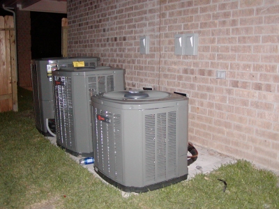 - 3 A/C units are installed outside of garage. The smallest one appears to be for the master bedroom, bathroom & closet. The middle A/C unit appears to be for the remainder of the downstairs, and the biggest unit is for upstairs.