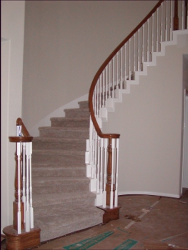 - Carpet is installed on stairs.