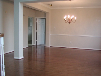 - Paper is removed from wood flooring in dining room.