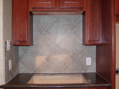- Moulding is added on bottoms of narrow cabinets above cooktop. These had previously been removed (probably when they installed the tile?)