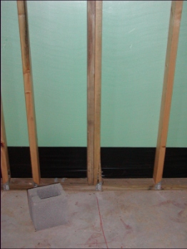 - Close-up of split stud in master bedroom closet. An additional stud had been added to the left of the stud. But the inspector said that a new hurricane tie will also be needed and possibly another stud on the right.