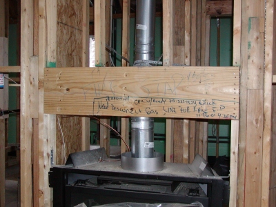 - Closeup of front of fireplace. Extra framing which had been added has been removed.