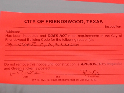 - 2nd of 2 stickers from failed brick-in inspection.