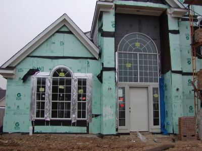 - Close-up of front of study prior to brick-in.