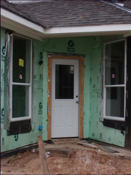 - Close-up of back door (including newly installed brushed nickel door knob).