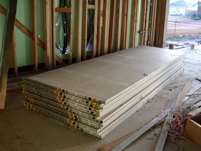 - Sheetrock stacked in garage. This sheetrock was labeled "fireboard" and looked a little different than the other sheetrock inside the house. I am guessing maybe there are additional requirements for sheetrock in the garage??