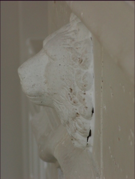 - Profile view of lion's head on fireplace. It still needs some caulking/touch-up work.