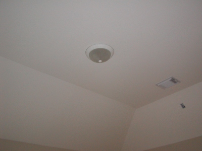 - Light fixture installed in media room. We thought we were supposed to get a ceiling fan in this room, and plan to ask the builder about it.