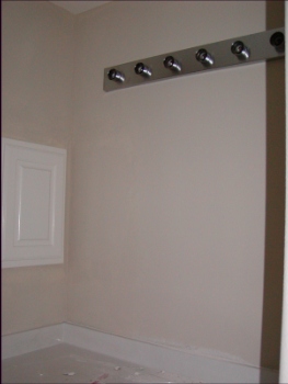 - Close-up of hollywood lighting installed in upstairs bathroom.